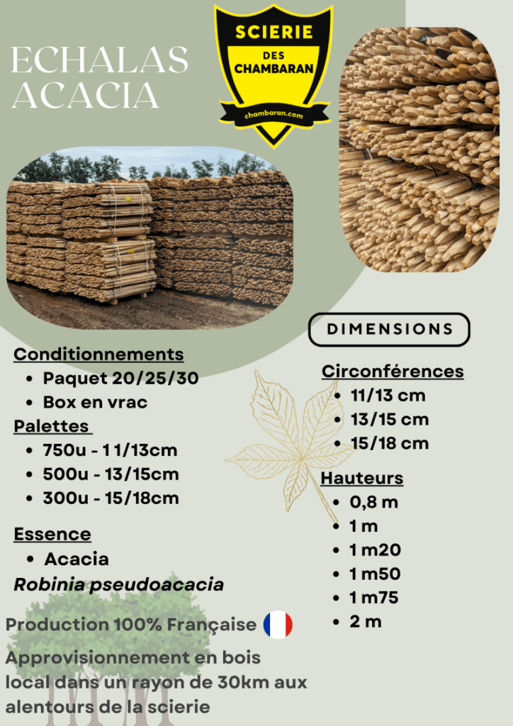 Essences : Châtaignier (Castanea sativa) ou acacia (Robinia pseudoacacia).